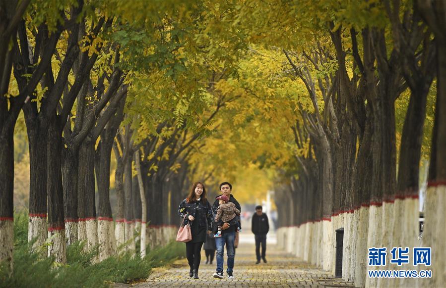 市民在寧夏銀川市鳳凰公園欣賞秋景(10月20日攝)。