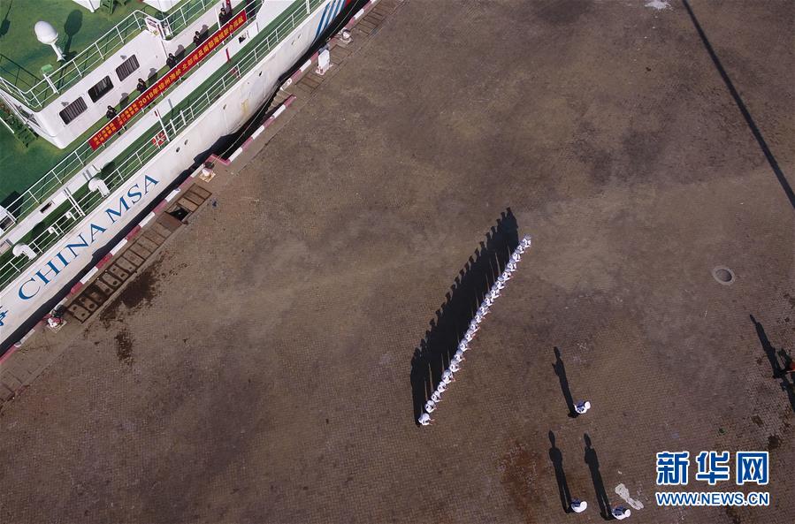 11月3日,海事執(zhí)法人員準(zhǔn)備登上“海巡21”輪(無(wú)人機(jī)拍攝)。當(dāng)日,隨著“海巡21”輪緩緩駛離??诤J卤O(jiān)管基地碼頭,由瓊桂粵海事部門共同開展的瓊州海峽、北部灣及環(huán)海南島水域跨轄區(qū)聯(lián)合巡航執(zhí)法活動(dòng)揭開序幕。新華社記者楊冠宇攝