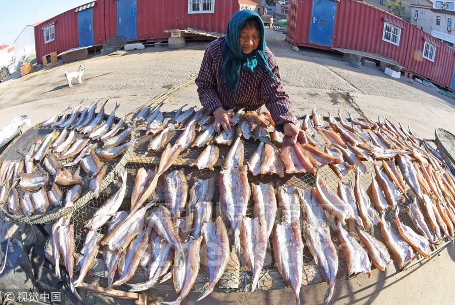 訊 金秋時節(jié),江蘇連云港市沿海秋捕迎來豐收,漁民們將捕獲的鯧魚、鰻魚、小黃魚、烏賊等經(jīng)過腌制、晾曬加工成魚干,海島處處呈現(xiàn)出一派豐收景象。