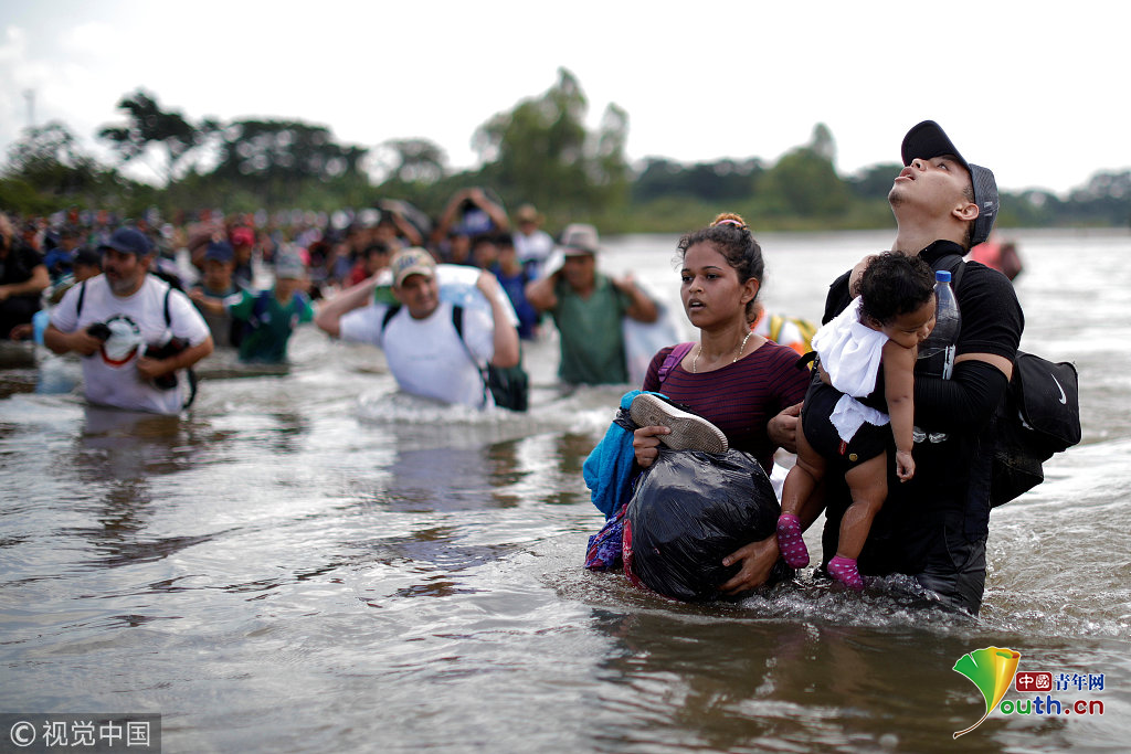 當(dāng)?shù)貢r(shí)間2018年11月2日,墨西哥與危地馬拉邊界,中美洲移民繼續(xù)向美國挺進(jìn)。圖片作者:UESLEI MARCELINO