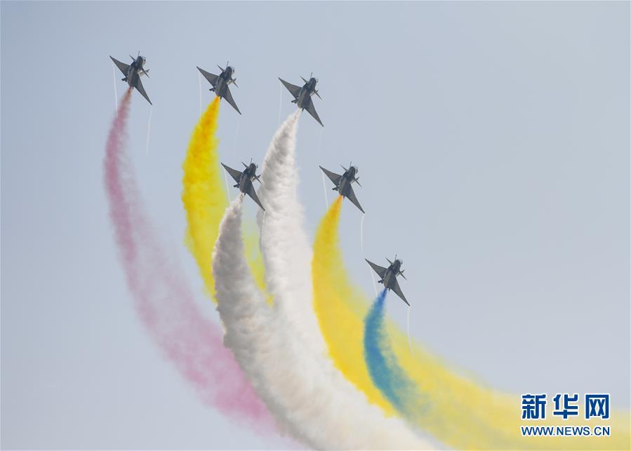 11月6日,中國空軍八一飛行表演隊在航展現(xiàn)場進行飛行表演。當(dāng)日,第十二屆中國國際航空航天博覽會在珠海開幕。新華社記者鄧華攝