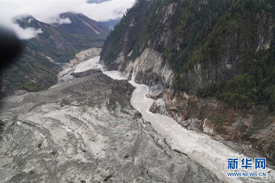 堰塞體現(xiàn)場(chǎng)圖片(10月18日攝)。 新華社記者 普布扎西攝