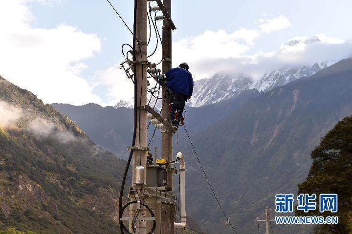 湖水淹沒地段,電力部門實施斷電措施,以防意外發(fā)生(10月18日攝)。 新華社記者 覺果攝