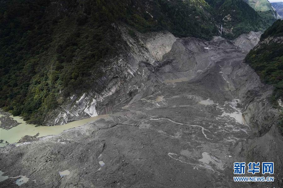 堰塞體現(xiàn)場(chǎng)圖片(10月18日攝)。 新華社記者 普布扎西攝