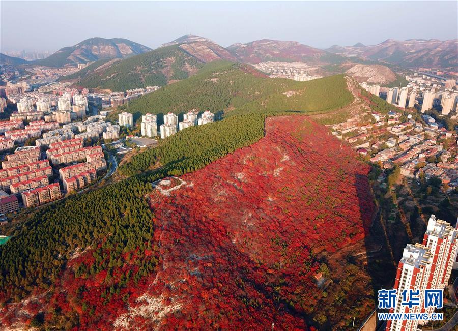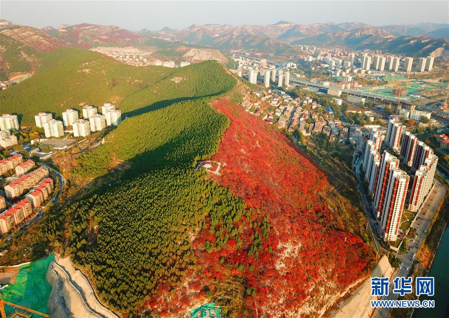 深秋時(shí)節(jié),山東濟(jì)南楔子山山脊兩邊種植的植被形成“一山雙色”景觀,令人稱(chēng)奇。