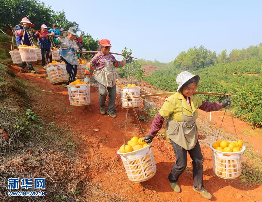 近日,江西省贛州市于都縣近15萬畝臍橙進入豐收采摘期,當地農戶抓住晴好天氣采摘,果園呈現(xiàn)一派繁忙景象。 新華社記者 胡晨歡攝