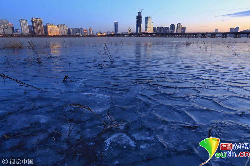 松花江封江 冰面如鏡倒影冰城夜景