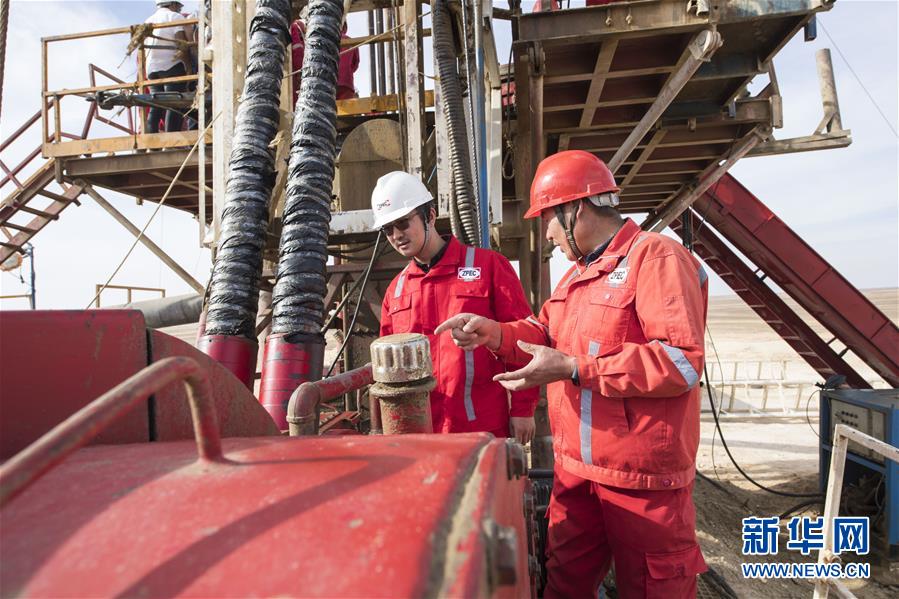 11月20日,在埃及明亞省,中曼石油埃及分公司總經(jīng)理李偉(左)在鉆井現(xiàn)場(chǎng)查看。 2017年,中國(guó)中曼石油公司與阿聯(lián)酋海灣集團(tuán)簽訂合同,為該集團(tuán)在埃及沙漠中的大型農(nóng)業(yè)項(xiàng)目鉆探300口水井。根據(jù)合同,中曼石油將先期完成30口井的試鉆探,剩余水井將以每月7口的速度交付。目前有超過200名工人在鉆井現(xiàn)場(chǎng)作業(yè),大部分是埃及本地人。 新華社記者李碧念攝
