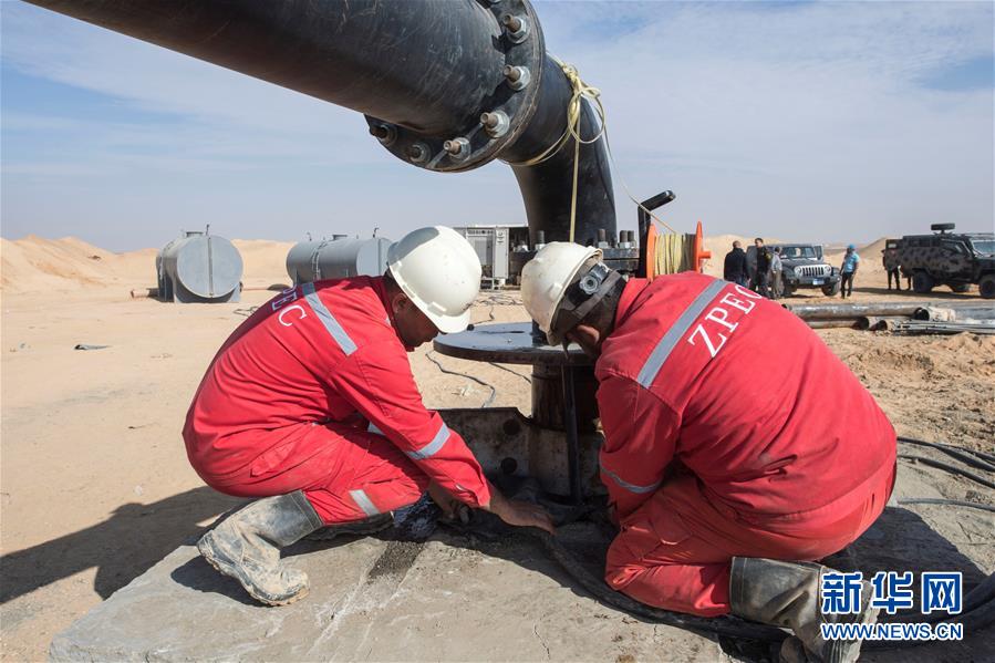 11月20日,在埃及明亞省,中國(guó)中曼石油公司的工人在鉆井現(xiàn)場(chǎng)作業(yè)。 2017年,中國(guó)中曼石油公司與阿聯(lián)酋海灣集團(tuán)簽訂合同,為該集團(tuán)在埃及沙漠中的大型農(nóng)業(yè)項(xiàng)目鉆探300口水井。根據(jù)合同,中曼石油將先期完成30口井的試鉆探,剩余水井將以每月7口的速度交付。目前有超過200名工人在鉆井現(xiàn)場(chǎng)作業(yè),大部分是埃及本地人。 新華社記者李碧念攝