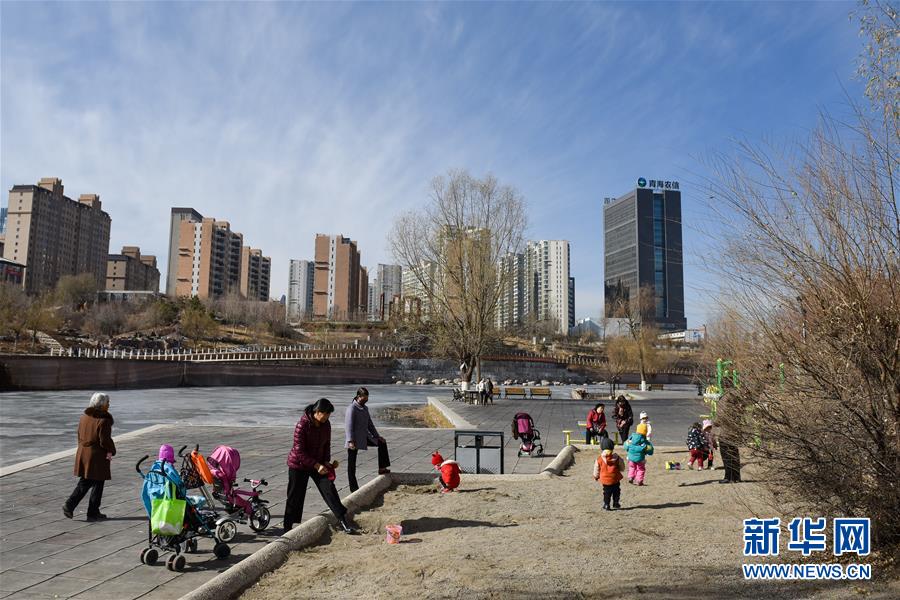 11月28日,幾名市民帶著孩子在西寧市海湖新區(qū)的公園內(nèi)游玩。 新華社記者 吳剛 攝