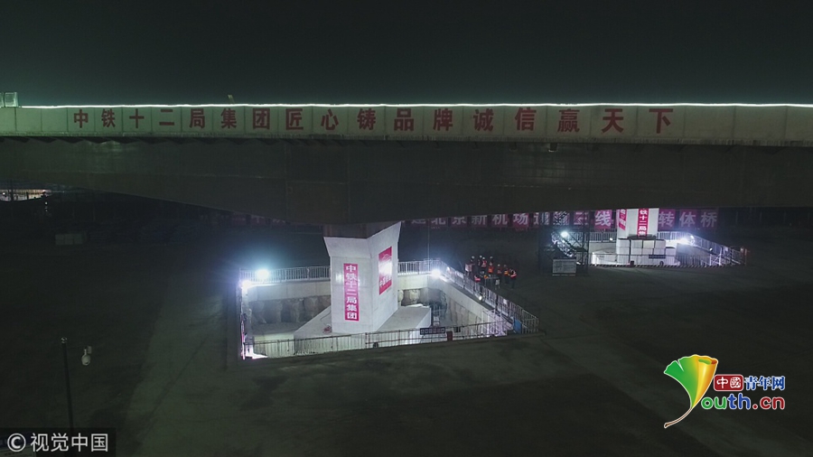 2018年12月1日,北京,大興國際機(jī)場高速公路重要節(jié)點工程“三線四橋”同步轉(zhuǎn)體工程順利完成。機(jī)場配套交通“咽喉要道”的打通,標(biāo)志著大興國際機(jī)場高速公路全線主體基本建成,軌道交通新機(jī)場線地上段基本貫通。美立/視覺中國