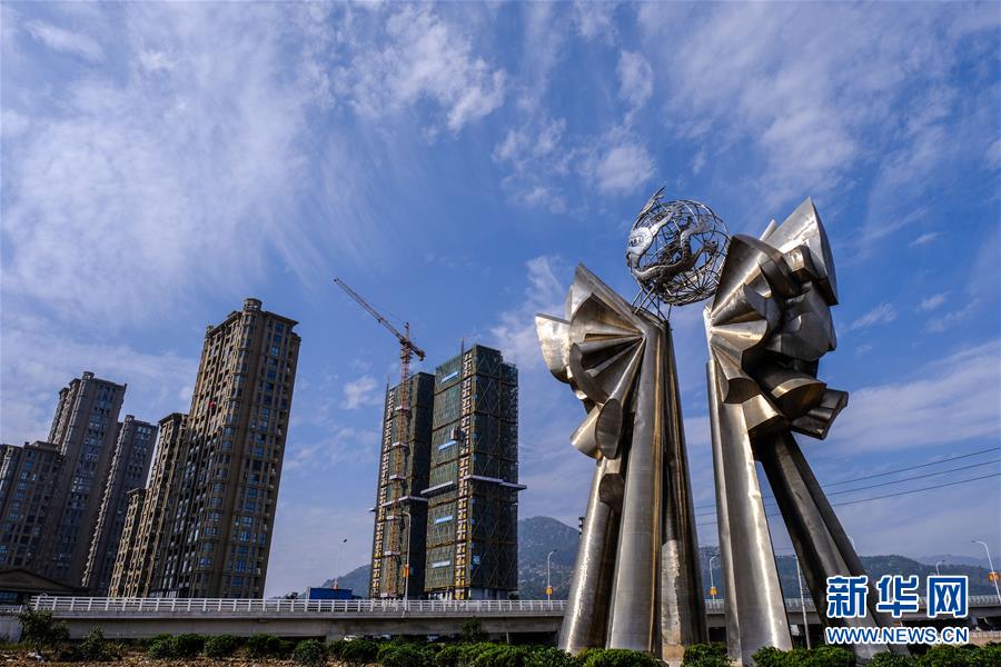 這是12月3日在龍港鎮(zhèn)拍攝的正在建設的高樓。