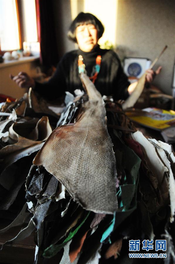 張琳的工作室堆滿了魚皮(2011年11月28日攝)。國家級非物質(zhì)文化遺產(chǎn)赫哲族魚皮制作技藝是我國赫哲族傳統(tǒng)手工藝術。作為這項技藝的黑龍江省級傳承人,十余年來,張琳一直從事魚皮畫的研究和創(chuàng)作,并通過做推廣、開講座、辦活動,讓更多年輕人了解并喜歡上這一傳統(tǒng)手工藝,將這項瀕臨失傳的藝術更好地傳承下去。新華社記者 王凱 攝