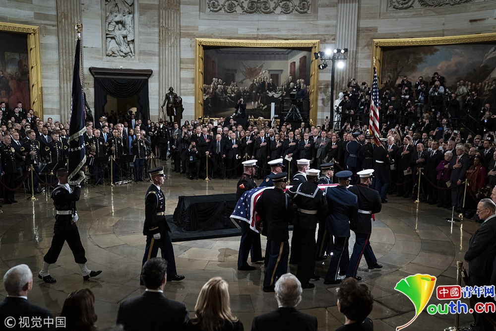 當?shù)貢r間2018年12月3日,美國前總統(tǒng)老布什的靈柩送抵美國國會大廈,正式的追悼儀式就此開始。