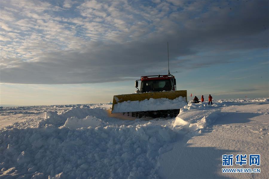 修路小組成員用雪地車(chē)裝備的鏟斗推平積雪(12月1日攝)。 搭載中國(guó)第35次南極科考隊(duì)的“雪龍”號(hào)極地考察船日前到達(dá)距離中山站44公里處的陸緣冰區(qū),準(zhǔn)備迎來(lái)本次南極科考首場(chǎng)攻堅(jiān)戰(zhàn)——物資卸運(yùn)。一支探冰小組隨即展開(kāi)海冰探路,以期盡快打通從“雪龍”號(hào)到中山站的冰上運(yùn)輸線,盡早啟動(dòng)冰上運(yùn)貨。 新華社記者 劉詩(shī)平 攝