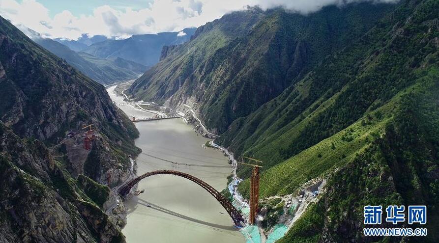 9月28日無(wú)人機(jī)拍攝的川藏鐵路拉林段重點(diǎn)標(biāo)志性工程藏木特大橋。當(dāng)日,隨著最后一節(jié)鋼管拱的對(duì)位和鎖定完畢,川藏鐵路拉林段藏木特大橋成功合龍,標(biāo)志著大橋主體結(jié)構(gòu)施工取得了關(guān)鍵性勝利。藏木特大橋由中國(guó)中鐵廣州局集團(tuán)承建,拱高112米,橋橫跨雅魯藏布江峽谷,水深66米。新華社記者普布扎西攝