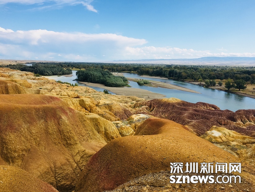 深圳新聞網(wǎng)訊 沒(méi)去前聽(tīng)說(shuō),如果到了阿勒泰地區(qū)的話,千萬(wàn)別錯(cuò)過(guò)這個(gè)特別的雅丹地貌景觀,這里一河兩岸截然不同的自然生態(tài),是其它地方難以看到的,這有個(gè)美名一一天下第一灘。
