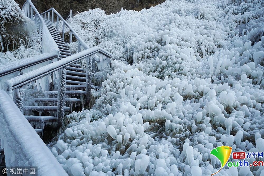 近日,冰島的塞里雅蘭瀑布在零下12攝氏度的氣溫下結(jié)冰,畫面彷如天外仙境。圖片來源:視覺中國
