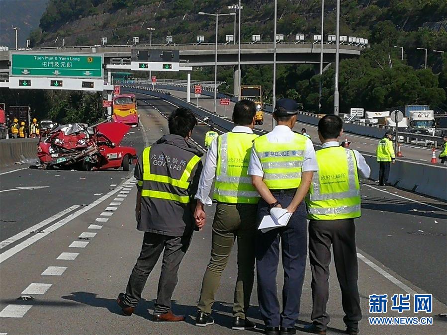 11月30日凌晨,香港青衣長青公路發(fā)生嚴重車禍,導致5人死亡,30多人受傷。目前所有傷者已被分別送到附近4家醫(yī)院,救援正在進行當中。 新華社記者 吳曉初 攝