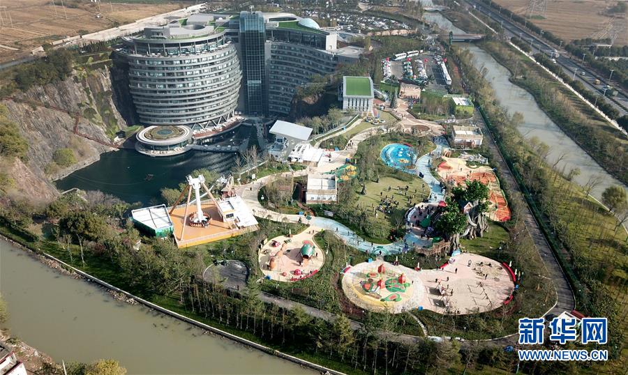 12月18日無(wú)人機(jī)拍攝的世茂精靈之城主題樂(lè)園。 當(dāng)日,“世茂精靈之城主題樂(lè)園奇幻親子嘉年華開(kāi)幕暨上海公益基地揭牌儀式”在位于上海佘山國(guó)家旅游度假區(qū)的世茂精靈之城主題樂(lè)園一期(“深坑秘境”)正式啟動(dòng)。“深坑秘境”毗鄰上海佘山世茂洲際酒店,除了擁有俯瞰“深坑”的玻璃棧道外,還包括360度崖壁大擺錘、精靈樹(shù)屋、沙漠考古、夢(mèng)幻水域和蟲(chóng)蟲(chóng)世界等項(xiàng)目,帶來(lái)親子游玩新體驗(yàn)。 新華社記者 方喆 攝