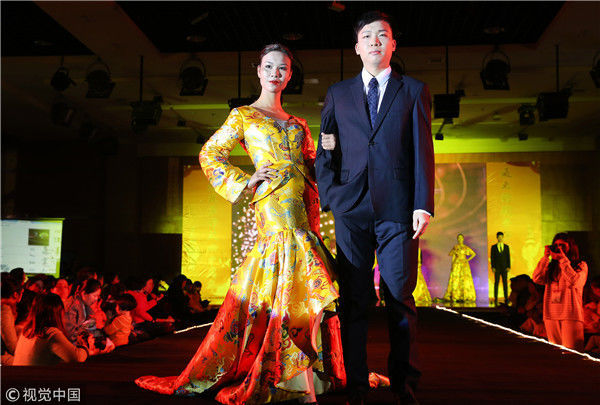 2018年12月17日晚,江蘇南通大學(xué)紡織服裝學(xué)院慶祝改革開(kāi)放40周年首屆非專(zhuān)業(yè)新生服飾秀精彩上演,41位模特身著極具年代感的服裝,展示了55套穿搭造型,演繹了40年來(lái)不同年代的衣著風(fēng)采。許叢軍/視覺(jué)中國(guó)
