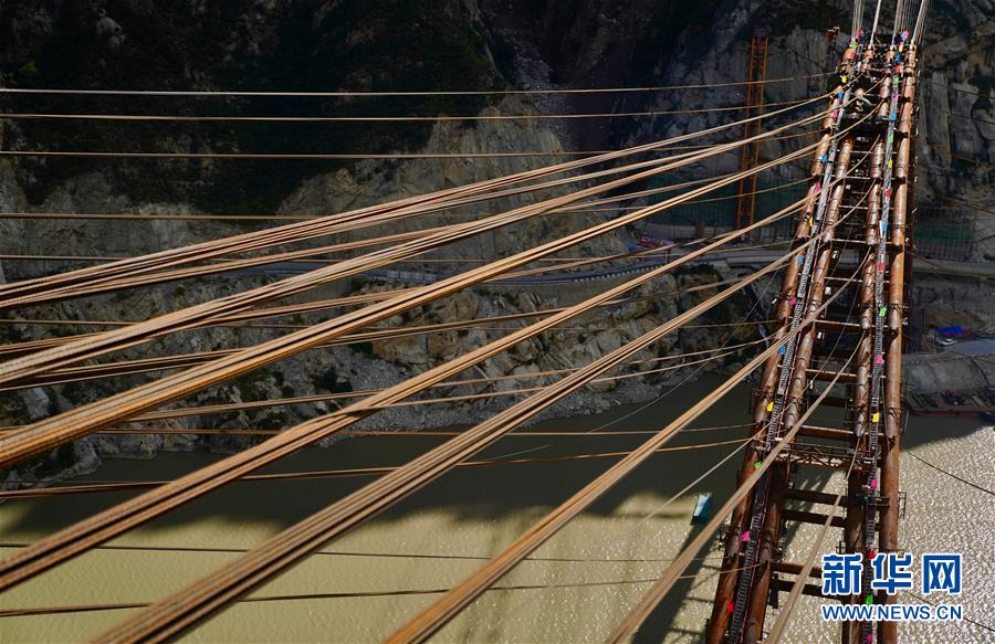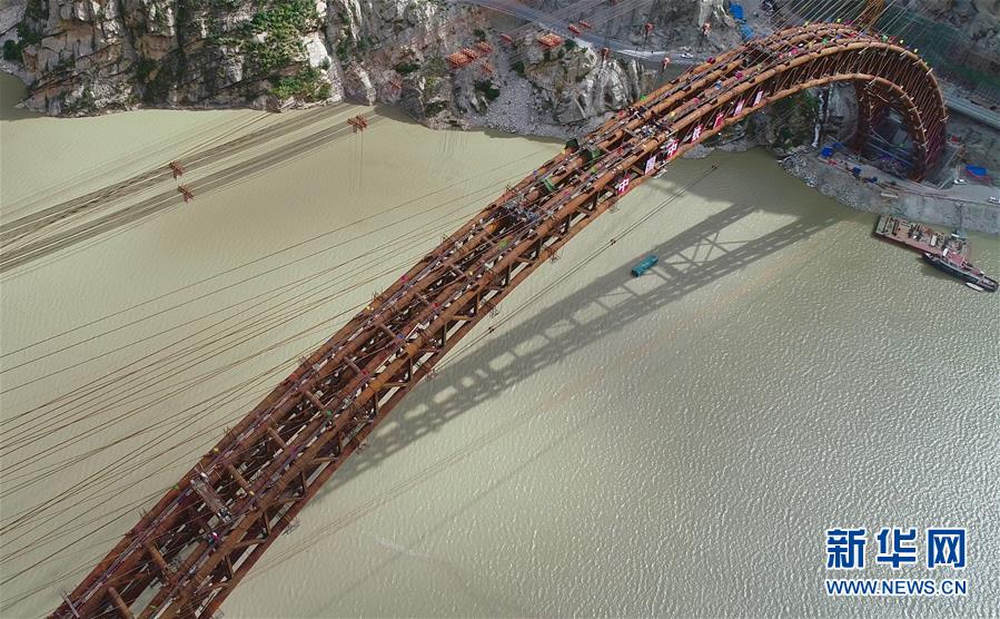 9月28日拍攝的川藏鐵路拉林段重點(diǎn)標(biāo)志性工程藏木特大橋。 當(dāng)日,隨著最后一節(jié)鋼管拱的對位和鎖定完畢,川藏鐵路拉林段藏木特大橋成功合龍,標(biāo)志著大橋主體結(jié)構(gòu)施工取得了關(guān)鍵性勝利。藏木特大橋由中國中鐵廣州局集團(tuán)承建,拱高112米,橋橫跨雅魯藏布江峽谷,水深66米。 新華社記者普布扎西攝