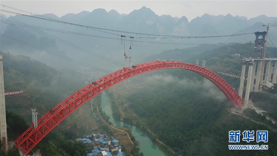 9月12日使用無人機(jī)拍攝的大小井特大橋。 目前,橫跨在貴州省羅甸縣大井河上的大小井特大橋建設(shè)進(jìn)入沖刺階段。大小井特大橋全長1.5公里,主跨450米,是世界最大跨徑上承式鋼管混凝土拱橋。據(jù)了解,該橋是平塘至羅甸高速公路關(guān)鍵性工程,對打通貴州“斷頭路”,助推滇黔桂石漠化片區(qū)脫貧攻堅(jiān)具有重要意義。 新華社記者劉續(xù)攝