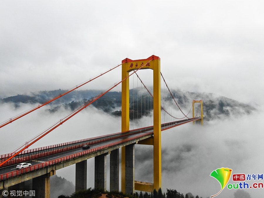 普立大橋云飄霧繞如仙境 一路風(fēng)光美不勝收