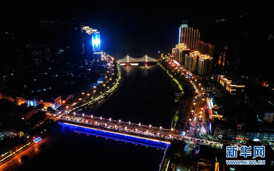 夜幕降臨,地處廣西東北部的荔浦市街頭霓虹閃爍,小城夜色如詩如畫。