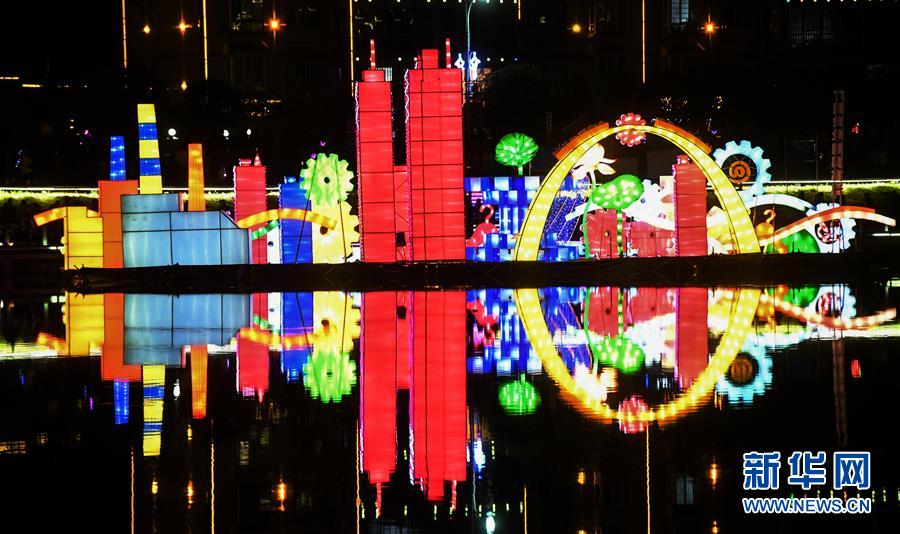 荔浦河中的花燈(12月17日攝)。 新華社記者張愛林?jǐn)z
