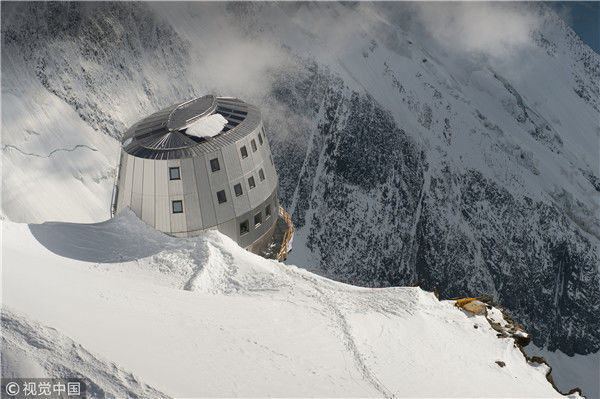 2012年8月6日消息(具體拍攝時間不詳),法國圣熱爾維,一座坐落在阿爾卑斯山脈上海拔3835米的旅館近日落成,旅館目前處于試運(yùn)行狀態(tài)直到8月底向公眾開放。這座旅館共有120個床位,達(dá)到了高環(huán)境質(zhì)量標(biāo)準(zhǔn)。