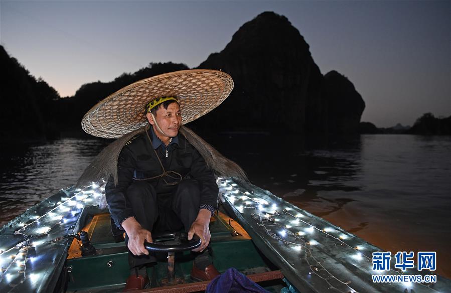 舒港發(fā)在龍虎山景區(qū)駕駛小船參與實景演出《尋夢龍虎山》(10月27日攝)。