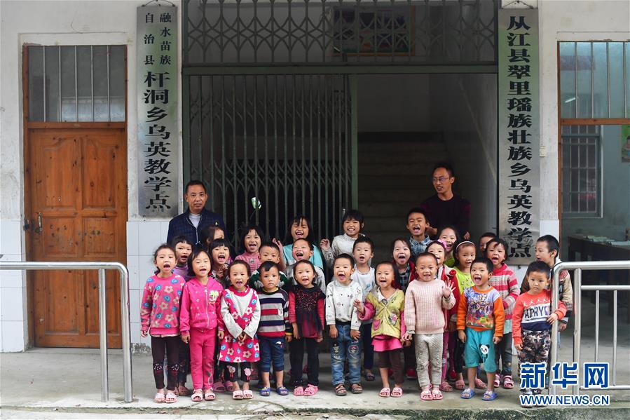 烏英教學點“一校跨兩省區(qū)”,目前有廣西籍學生18名,貴州籍學生9名,廣西貴州籍老師各1名。 烏英苗寨位于黔桂交界的大苗山深處,共有140戶,其中100戶屬廣西柳州市融水苗族自治縣桿洞鄉(xiāng)黨鳩村,40戶屬貴州省從江縣翠里瑤族壯族鄉(xiāng)南岑村。由于地處偏遠,山多地少,經(jīng)濟發(fā)展緩慢,目前整個苗寨還有76戶是貧困戶。 面對艱巨的脫貧任務,當?shù)攸h委政府在努力改善烏英苗寨公共基礎設施的同時,因地制宜,帶動群眾積極發(fā)展特色產(chǎn)業(yè)。從2017年11月至今的一年多時間,這里發(fā)生了很大改變:10戶村民新建了木樓,120多戶完成“三改”(改廁改廚改圈),1名貧困考生考上大學,1戶購買新汽車,4對新人舉行了婚禮,寬帶網(wǎng)絡開始進入貧困戶家庭,苗寨修建了新的辦公大樓和戲臺,安裝了4盞太陽能路燈,購買了40多個新蘆笙,水果種植專業(yè)合作社2018年種植的百香果也開始有所收獲,18戶貧困戶進入脫貧公示階段…… 烏英苗寨600多名黔桂苗族群眾,正在用勤勞的手,拔窮根摘窮帽,一起創(chuàng)造美好的明天。