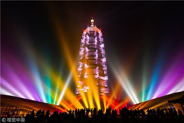 2017年12月31日,南京銀杏湖樂園跨年夜,燈光璀璨。