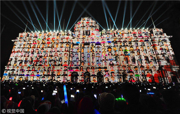 2012年12月31日,上海,“2013上海迎新年倒計時晚會”當晚在黃浦江畔的外灘金融廣場上舉行。最大亮點的4D燈光秀綜合運用計算機圖形技術、燈光投影技術、激光技術等多種技術表現(xiàn)手段,利用最新的科技和最新的藝術形式作為載體,讓百年建筑活過來“跳舞”。