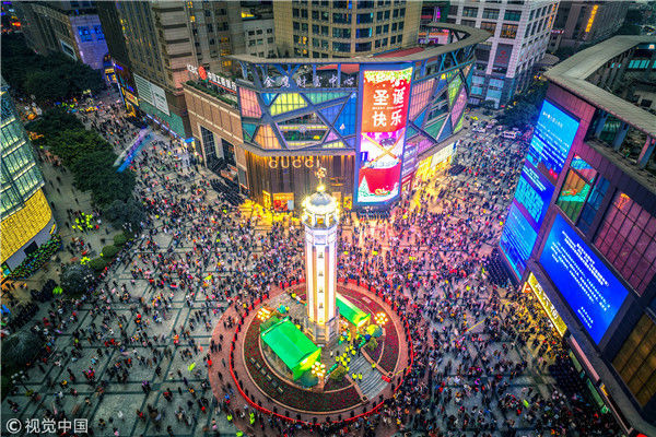 2017年12月31日晚,重慶市渝中解放碑步行街,10萬人齊聚解放碑,歡歡喜喜度過2018跨年夜。每年重慶的跨年夜,人們都會(huì)齊聚解放碑,縱觀國內(nèi)大城市的跨年夜,極少有哪座城市有重慶這么熱鬧,這已經(jīng)成為中國城市中最有特色的跨年活動(dòng)之一。解放碑作為重慶最具標(biāo)志性的建筑之一,可謂意義非凡。雖然周邊建筑越來越高,使相形之下的解放碑顯得越來越小,但依然撼動(dòng)不了解放碑在重慶人民心畝中的地位。