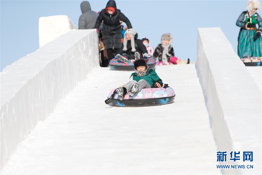 12月26日,小朋友在玩雪滑梯。 當(dāng)日,內(nèi)蒙古冰雪那達(dá)慕系列活動(dòng)在呼倫貝爾市鄂溫克旗繼續(xù)進(jìn)行,牧民歡聚一堂,參加各種賽事和趣味項(xiàng)目。 新華社記者 虞東升 攝