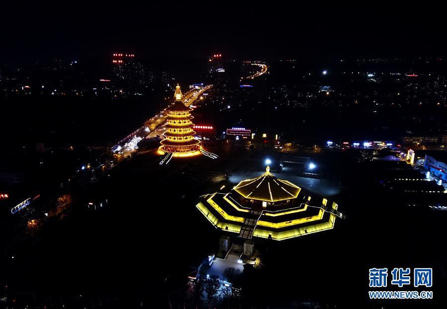 隋唐洛陽城國家遺址公園內(nèi)的明堂(右)和天堂(12月26日無人機(jī)拍攝)。新華社記者馮大鵬攝