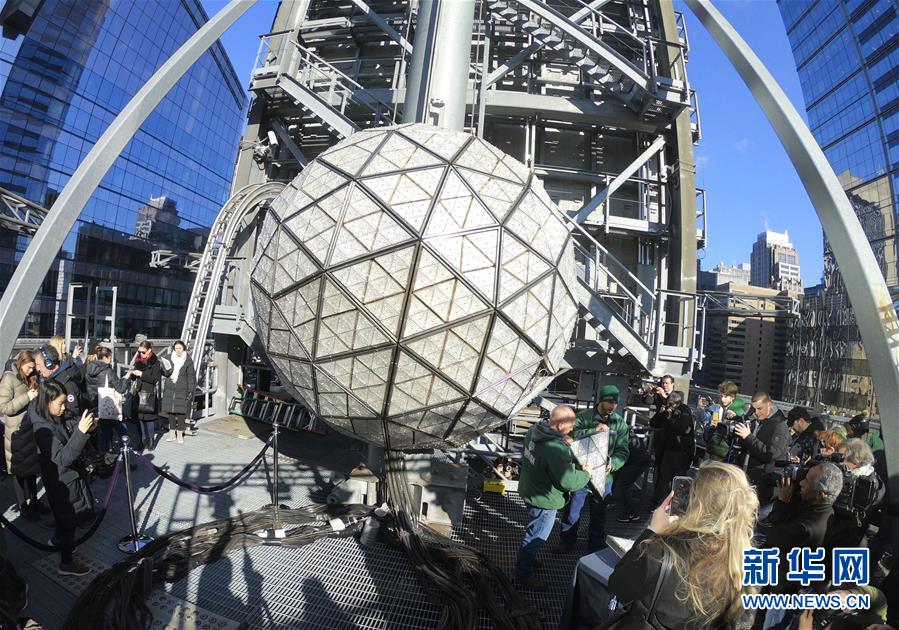 這是12月27日在美國紐約時報廣場拍攝的水晶球安裝現(xiàn)場。 每年12月31日晚,紐約時報廣場都會舉辦跨年慶典,當午夜鐘聲響起之時,水晶球緩緩落下,慶祝新的一年到來。 新華社記者 張墨成 攝