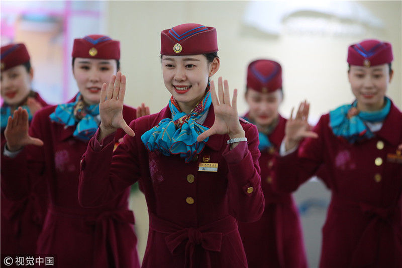 2018年12月27日,四川成都,為備戰(zhàn)即將開通的成雅鐵路,中國鐵路成都局集團有限公司成都客運段動車二隊對成雅動車的乘務(wù)人員進行理論、形體、服務(wù)禮儀等內(nèi)容的培訓(xùn)。