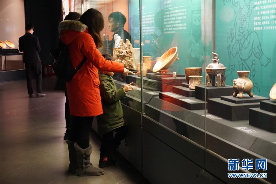 1月1日,觀(guān)眾在金沙遺址博物館里參觀(guān)跨文明特展展品。 新華社記者康錦謙攝
