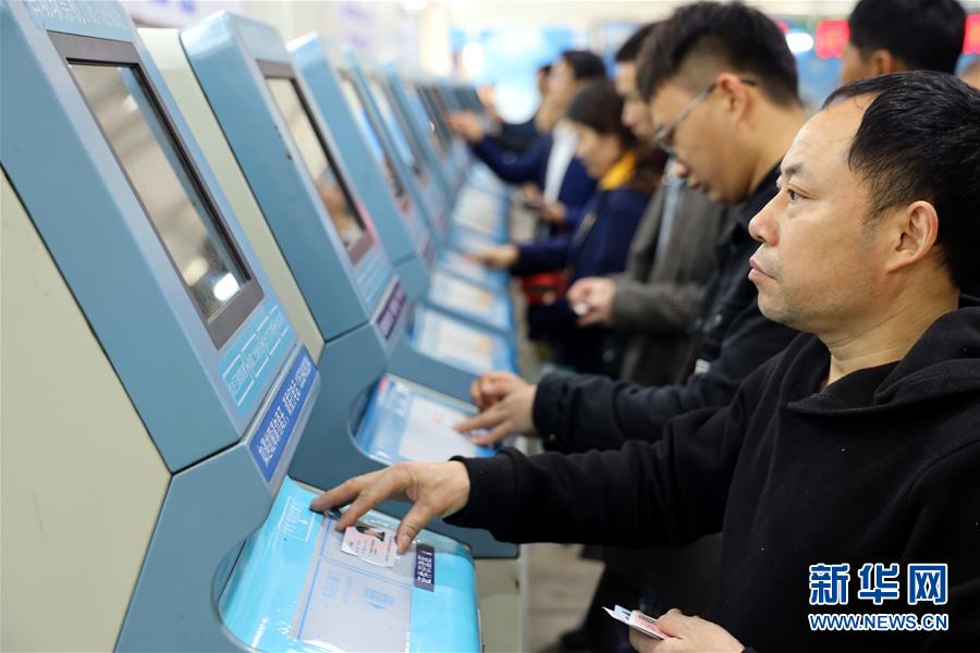 1月15日,旅客在廣州火車站售票大廳外臨時搭建的互聯(lián)網(wǎng)購票取票大棚內(nèi)的自助終端上取票。 為適應互聯(lián)網(wǎng)購票旅客比重持續(xù)上升趨勢,廣州火車站在籌備2019年春運票務業(yè)務時,優(yōu)化互聯(lián)網(wǎng)購票取票和退改簽業(yè)務辦理流程設計,提升效率,方便旅客出行。 新華社記者劉大偉攝