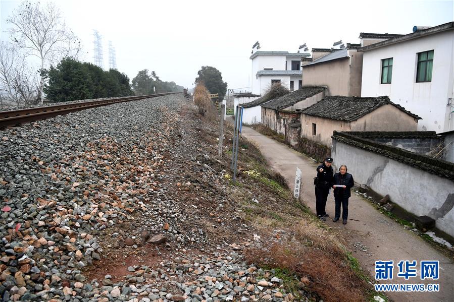 1月16日,汪茂才向鐵路沿線村民宣傳鐵路安全知識(shí)。 今年52歲的汪茂才是合肥鐵路公安處黃山站派出所歙縣警務(wù)室的一名線路民警,他所在的警務(wù)室負(fù)責(zé)皖南山區(qū)皖贛鐵路線約80公里范圍內(nèi)的線路安全。從警30年來(lái),線路巡查、鐵路安全知識(shí)宣傳等是汪茂才的日常工作。多年來(lái)的徒步巡線,讓汪茂才練就了一雙快腿,十公里的路,汪茂才兩個(gè)小時(shí)就能走完。 汪茂才負(fù)責(zé)的鐵路沿線周邊村莊較多,很多房子都是沿鐵路線而建,有些村民為了圖方便,違規(guī)穿越鐵路線。加強(qiáng)對(duì)鐵路沿線居民的安全宣傳教育,成為汪茂才的一項(xiàng)重要工作,沿線村民的安全意識(shí)也越來(lái)越高。 對(duì)汪茂才這樣的線路民警來(lái)說(shuō),大多數(shù)時(shí)候都是“獨(dú)行俠”,“當(dāng)線路民警就要耐得住寂寞,守得住孤獨(dú),與大山為伴,與線路為友,盡己所能,為鐵路安全運(yùn)行保駕護(hù)航。”汪茂才說(shuō)。 新華社記者劉軍喜攝