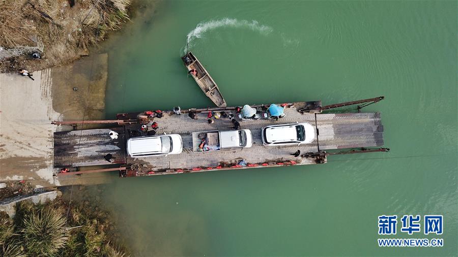 1月22日,渡輪在八吉渡口接送群眾(無(wú)人機(jī)拍攝)。新華社記者 歐東衢 攝