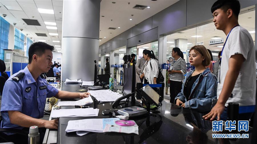 這是游客在東興市政務(wù)中心大廳辦理出入境手續(xù)(4月16日攝)。新華社記者張愛林攝