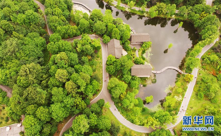這是5月1日無人機(jī)拍攝的重慶璧山觀音塘濕地公園景象。
