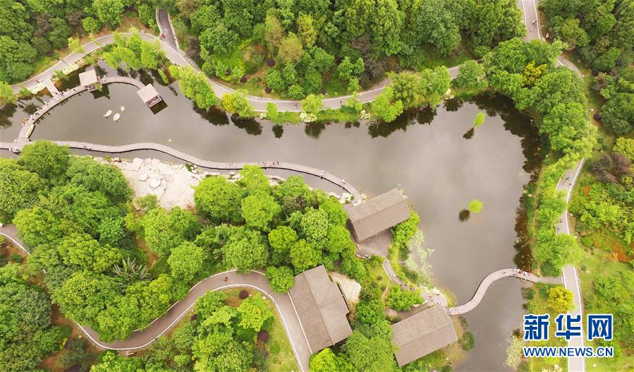 這是5月1日無(wú)人機(jī)拍攝的重慶璧山觀音塘濕地公園景象。新華社記者 王全超 攝