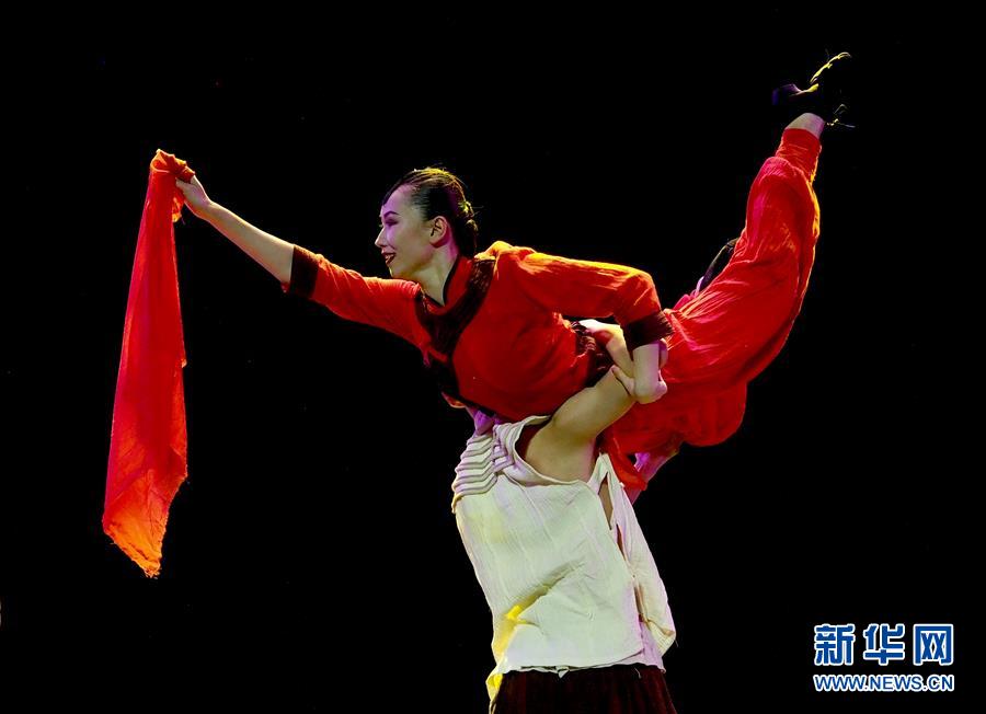 5月16日,在第十八屆群星獎決賽舞蹈類作品比賽中,演員在表演《紅高粱》。 當日,作為第十二屆中國藝術節(jié)的重要內容,第十八屆群星獎決賽在上海東方藝術中心啟動。84個入圍決賽作品將按照舞蹈、音樂、戲劇、曲藝4個門類進行7場比賽,最終評出20個獲獎作品。 新華社記者 任瓏 攝