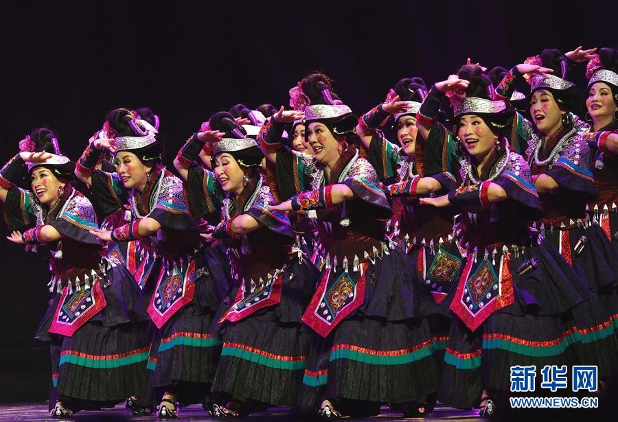5月16日,在第十八屆群星獎決賽舞蹈類作品比賽中,演員在表演《苗家阿婆笑哈哈》。 當日,作為第十二屆中國藝術節(jié)的重要內容,第十八屆群星獎決賽在上海東方藝術中心啟動。84個入圍決賽作品將按照舞蹈、音樂、戲劇、曲藝4個門類進行7場比賽,最終評出20個獲獎作品。 新華社記者 任瓏 攝