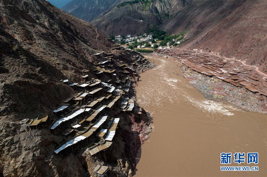 這是西藏芒康縣納西民族鄉(xiāng)的古鹽田景觀(5月22日無人機(jī)拍攝)。位于西藏昌都芒康縣瀾滄江畔的古鹽田,至今仍保持最原始的手工曬鹽方式。據(jù)史料記載,唐朝時(shí)期當(dāng)?shù)鼐烷_始曬鹽。鹽田在瀾滄江兩岸依山而建,由多根木柱搭架,架上用透水性強(qiáng)的泥土鋪成平面夯實(shí),當(dāng)?shù)鼐用駨臑憸娼系柠}井、鹽池中取出鹵水倒入鹽田,經(jīng)陽(yáng)光蒸曬、風(fēng)干,結(jié)晶成鹽。遠(yuǎn)遠(yuǎn)望去,鹽田錯(cuò)落有致,田中鹵水宛若鏡面,形成壯麗奇觀。新華社記者李鑫 攝